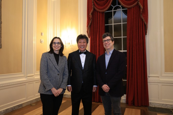 | 하버드대학교 케네디스쿨과 경영대학원(Harvard Business School)의 줄리 바틸라나(Julie Battilana, 왼쪽부터) 교수, 윤태근 이사장, 조나단 지트레인(Jonathan Zittrain) 교수가 기념촬영을 하고 있다. / 사진=INI |