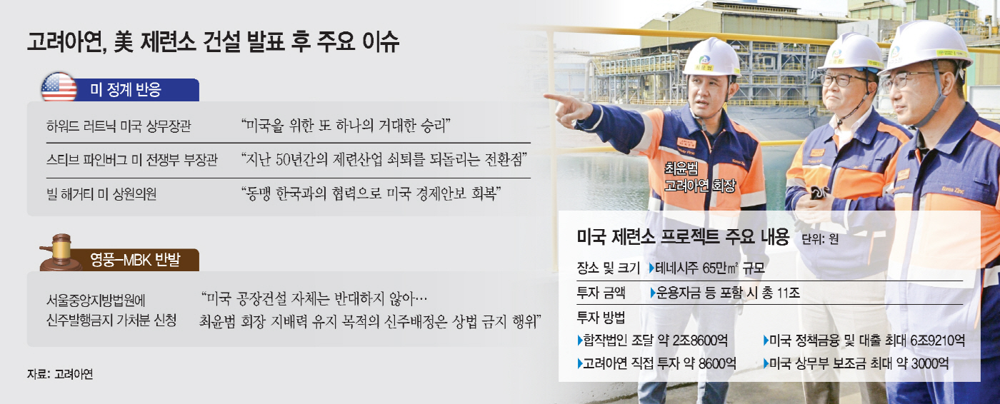 고려아연은 "영풍과 MBK가 고려아연을 여전히 적대적 M&A의 대상으로 보는 탓에 이번 미국 제련소 건설 프로젝트의 가치를 폄훼하고 있다"고 맞서고 있다.